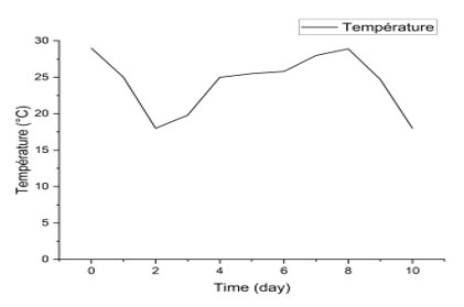 Fermentation Process Monitoring Parameters : Temperature Changes During Fermentation: The temperature curve observed (Figure 2) over a 10-day period shows significant fluctuations, with a marked drop around day 3, followed by a gradual rise, and then a further drop around day 10. These variations reflect biochemical and microbiological phenomena typical of the fermentation process.